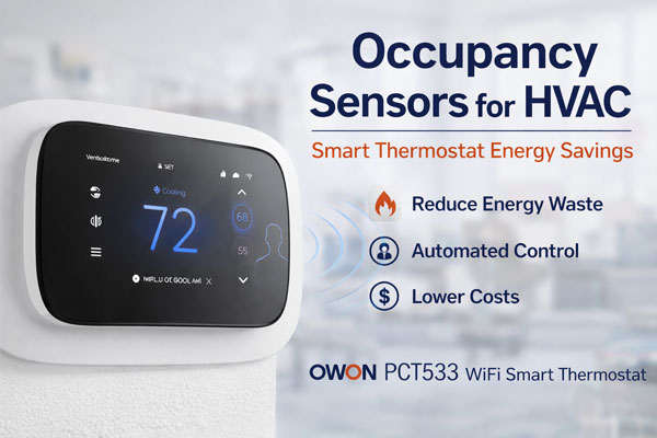 For North American 24VAC HVAC systems, OWON’s PCT533 WiFi smart thermostat offers an advanced solution that integrates occupancy sensing directly into the thermostat.